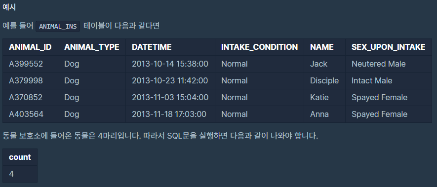 동물 보호소에 동물이 몇 마리 들어왔는지 출력하는 문제이다.
